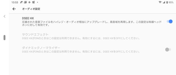 本機はXperiaシリーズの上位モデルと同じく、圧縮音源の補完を行う「DSEE HX」や、ハイレゾ音源をワイヤレスで再生可能にする「LDAC」に対応している。また、上述のようにヘッドホン端子も搭載されている