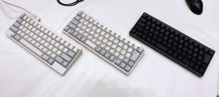 左からUSB接続専用の「Classic」(無刻印/白)、フラッグシップモデルの「HYBRID Type-S」(日本語配列/白)、「HYBRID」(日本語配列/墨)