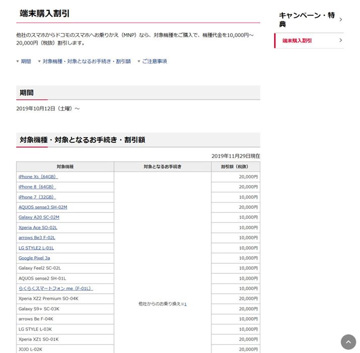 ただ、同法の改正前ほどではありませんが、改正後の現在でもMNP希望者向けの割引は提供されています。たとえばNTTドコモでは、MNP制度を利用して転入する際の機種代金を割り引く「端末購入割引」を提供しています。割引額は1万円または2万円で、機種により異なります。