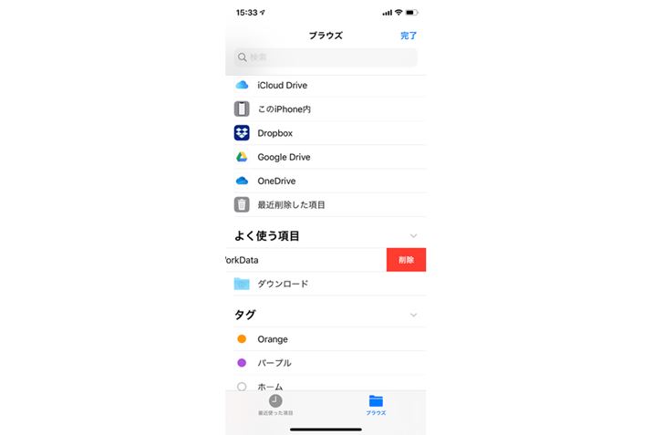 「ブラウズ」画面にある「よく使う項目」は、頻繁に利用するフォルダーを登録する。あらかじめ「ダウンロード」が登録されているが、「ダウンロード」はSafariでダウンロードしたファイルを保存する場所だ。