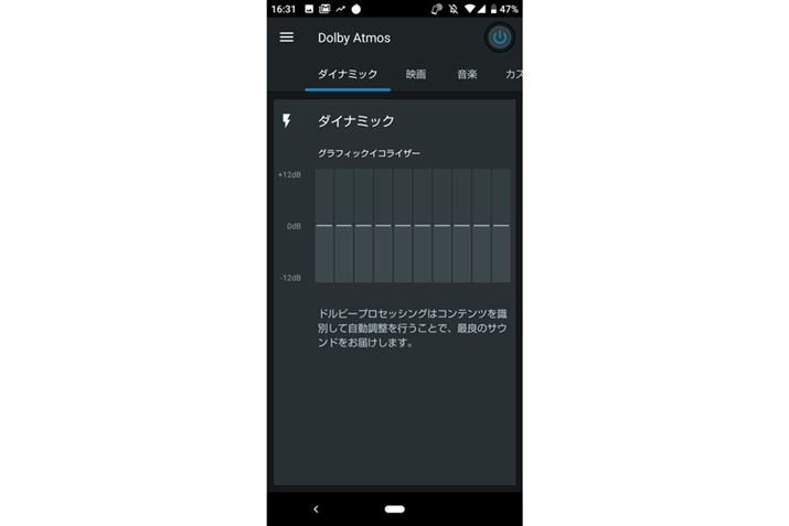 立体音響技術「Dolby Atmos」に対応。対応する映像コンテンツのサウンドを立体的にするほか、通常の音源にもエフェクトがかかり、臨場感が高まる