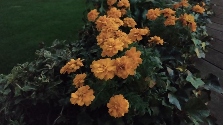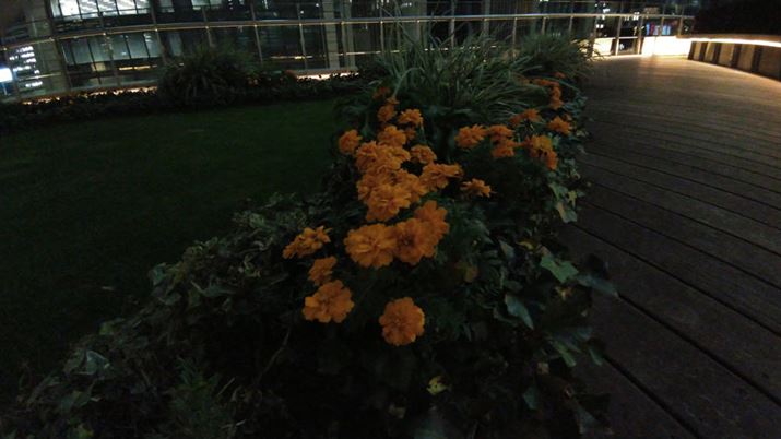 夜の花壇を撮影。ISO5376という超高感度だが、ディテールは残っている。また、中央に花に合わせたピントがきちんと合焦しており、デュアルピクセルイメージセンサー&全面位相差オートフォーカスの威力を感じた