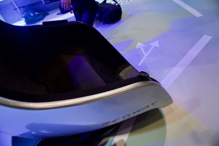 手元にあるスティックで車体をコントロールする仕組み。なお、現地では着席のみOKで操縦はNGだったため、実際の乗り心地は不明。価格や発売時期も記事作成時点では明らかにされていません。