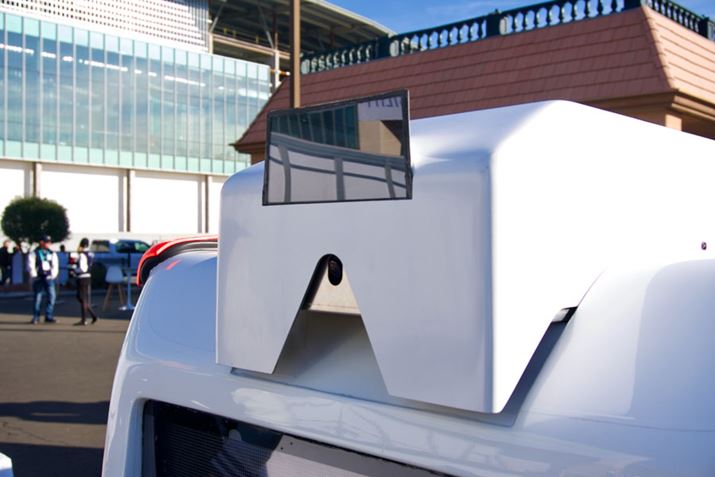 写真の光学カメラのほかに、LIDARや超音波センサーを複数搭載し、周囲の状況を把握しながら自動で走行します