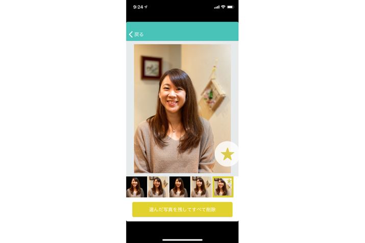 アプリを起動すると、重複、似たような写真がグループ分けされている。グループをタップし、写真を確認しながら削除する写真を選択。選択したら、「削除」をタップして削除する。