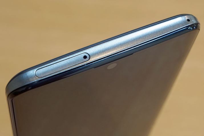 ボディ上面に、SIMカードスロットが配置される。ヘッドホン端子は非搭載。有線イヤホンは同梱されるUSB Type-C変換アダプターを使って接続する