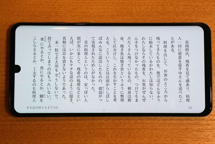 白の背景で電子書籍を表示させた。前モデル「AQUOS zero」では色かぶりが見られたが、本機のディスプレイはそうした色かぶりが見られない