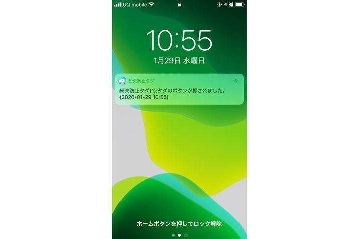 本製品のボタンを短押ししてスマートフォンの通知を鳴動させたところ。マナーモード中は音が鳴らないので、見つけにくいかもしれません