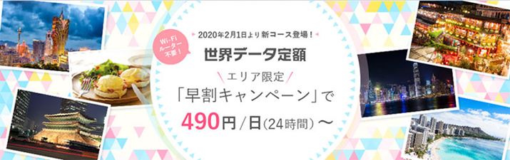 KDDIおよび沖縄セルラーは、2020年2月1日から、海外ローミングサービス「世界データ定額」に、新コース「早割」を追加した。