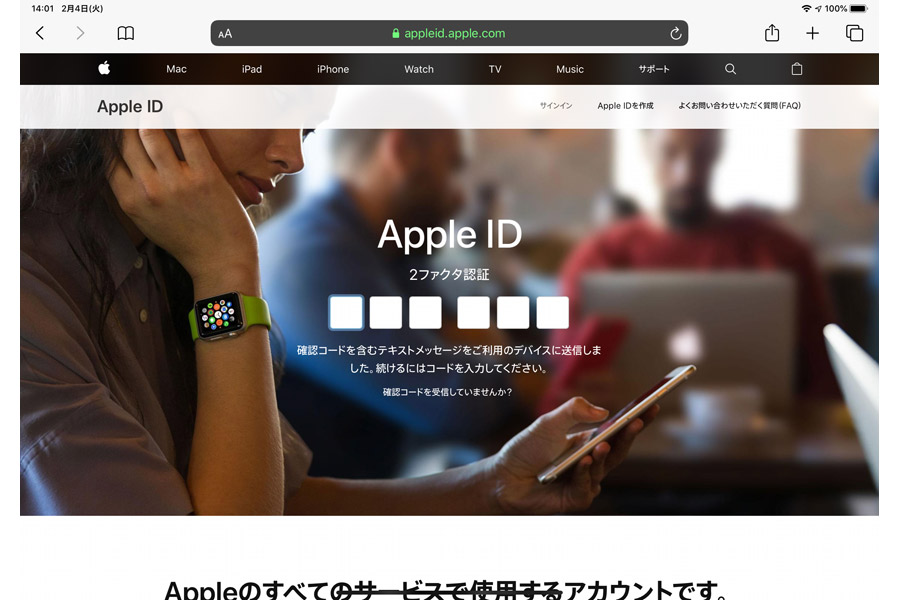 2ファクタ認証を設定すると、新しい機器やアプリなどからApple IDにサインインするときに、確認コードの入力が求められる。すぐに、登録した電話番号宛てに確認コードが届くので、入力すればサインインできる。