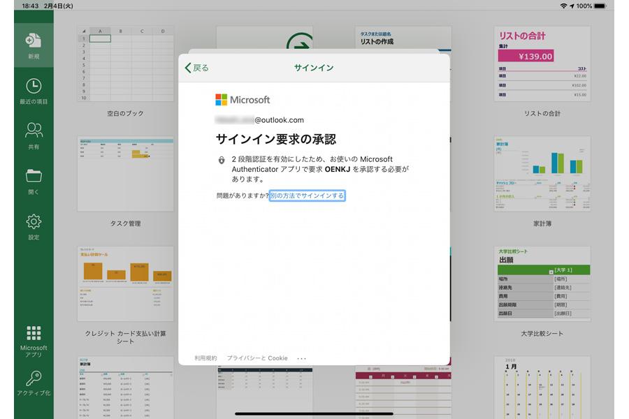 複数の認証要素を登録している場合、利用時にどの認証要素を使うかを選択できる。ここでは、iPad ProでExcelにサインインする操作を例に、認証アプリを使ったサインインの方法を紹介しておこう。