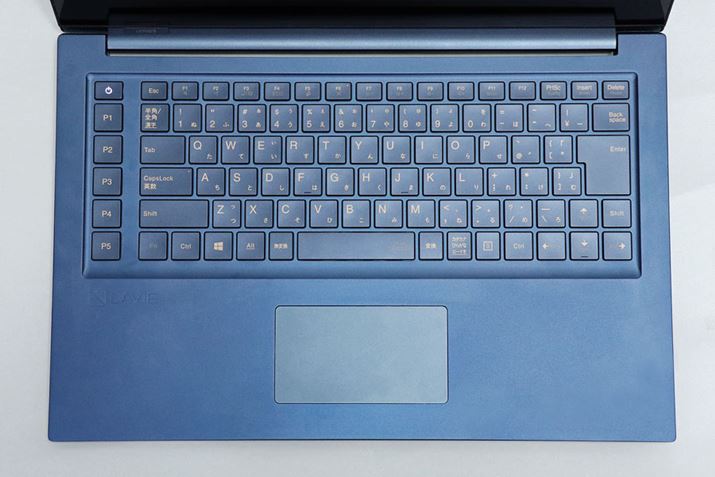 プロキー以外のキーボードは、少しだけかための絶妙なキータッチ。レイアウトの問題で、使い始めのときは、Fnキーを押そうとして、P5キーを押してしまうことがあった。タッチパッドは本体ではなく、プロキーを除くキーボードの中心に配置されており、手の収まりがよい。