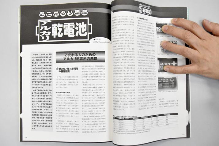 驚愕の「乾電池特集」。全60ページの大ボリュームで、乾電池の歴史からベンチマークまで、こまかく書いてある