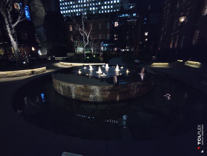 夜の噴水。全般に暗いのは確かだが、肉眼の印象には近い