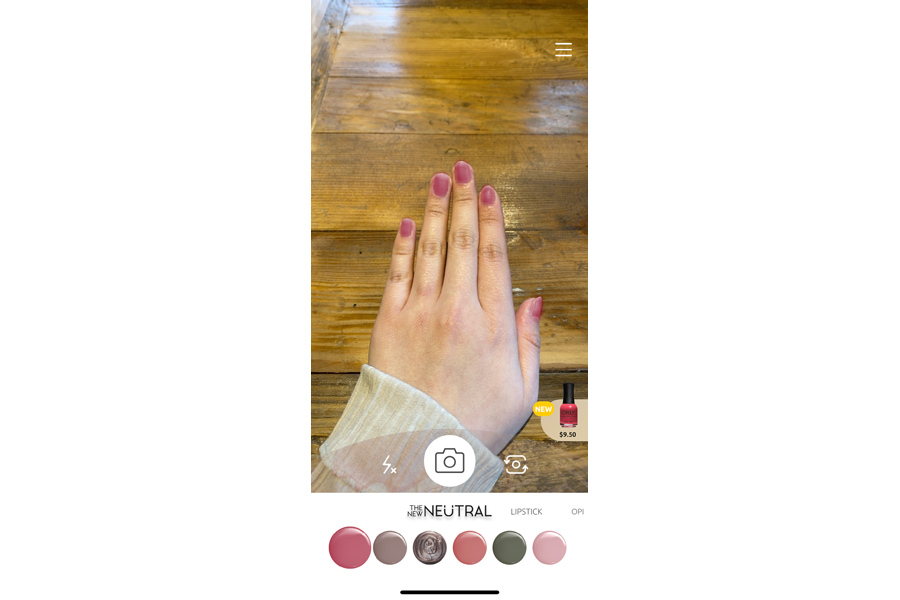 いろいろなカラーのネイルを試せるアプリ。起動すると爪部分を認識し、選んだネイルの色が自然に表示される