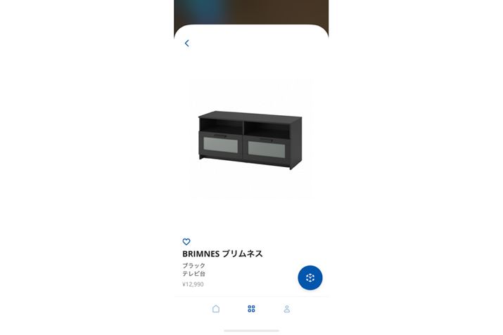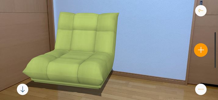 スウェーデン発祥の世界最大の家具メーカーであるIKEAが提供するアプリ。自宅やオフィスなどどこにでも、IKEAの家具を仮想的に配置して実際の雰囲気を確認できる。アプリを起動したら家具を選び、右下にある青色のボタンをタップ