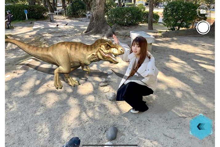 恐竜を現実の世界に呼び出して眺めたり、一緒に写真撮影ができる。無料では表示できるのがティラノサウルス・レックスとプテラノドンのみだが、有料(250円)でアロサウルスやステゴサウルスなどほかの恐竜も追加できる