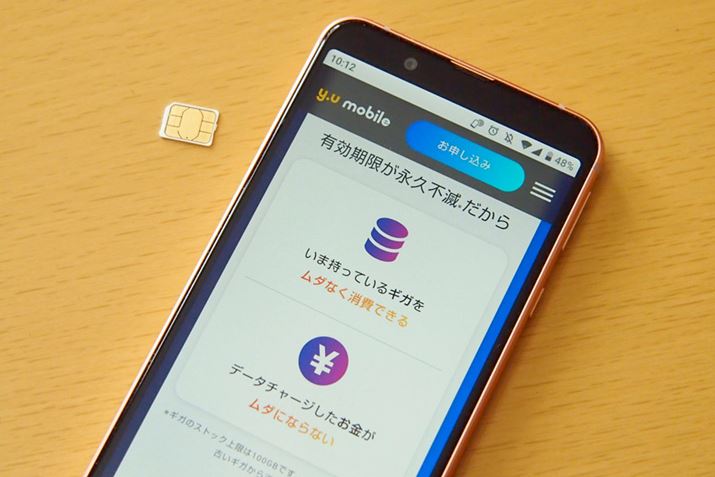 また、使いきれなかったデータ利用量が翌月に繰り越される格安SIMは多いものの、y.u mobileでは使い切るまで無期限に繰り越されることも特徴のひとつ。割安なデータチャージと無期限の繰り越しにより、データ利用量を無駄なく利用できるとY.U-mobileではアピールしています。