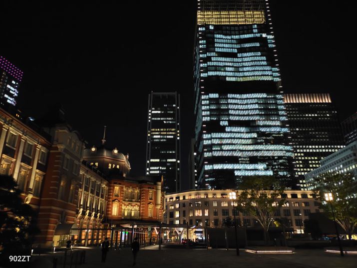 丸の内周辺の夜景を撮影。全般的に光量が不足しており、ぼやけた印象は否めない