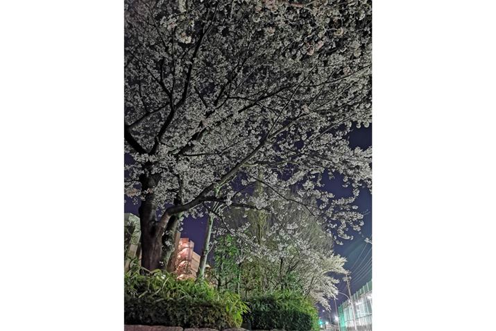 低照度でも明るく撮影できる「夜景」モードも健在。街灯しかない場所にある夜桜も、ノイズや手ブレはなし。少し色味が強調されすぎな点もありますが、手持ちでこのクオリティの写真を撮れれば十分すぎるでしょう