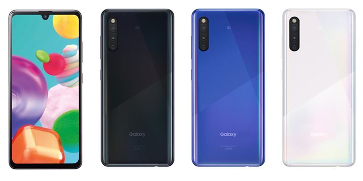 こちらもNTTドコモから発表済みのGalaxyシリーズのエントリーモデル。基本スペックはNTTドコモ版と共通で、約70(幅)×153(高さ)×8.1(厚さ)mmのボディに、2,400×1,080のフルHD表示に対応する約6.1インチの有機ELディスプレイを搭載する(サイズは暫定値、重量は計測中)。SoCには、台湾・MediaTek社製の「Helio P65」を採用し、4GBのメモリー、64GBのストレージ、512GBまで対応するmicroSDXCメモリーカードスロットを組み合わせる。OSはAndroid 10。メインカメラは約4,800万画素の広角カメラ、約800万画素の超広角カメラ、約500万画素の被写界深度計測カメラという組み合わせのトリプルカメラ。フロントカメラは約2,500万画素だ。このほか、FeliCaポートは搭載するが、フルセグ・ワンセグチューナーおよびワイヤレス充電には非対応となる。カラーバリエーションは、ブラック、ブルー、ホワイトの3色を用意。7月以降の発売を予定している。