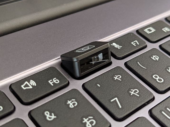「F7」キーがポップアップ式のWebカメラになっている。Webカメラをキーに格納することで、上部ベゼルの狭額縁化に貢献しているわけだ。不要時は格納しておけるので、プライバシーも簡単に守れる