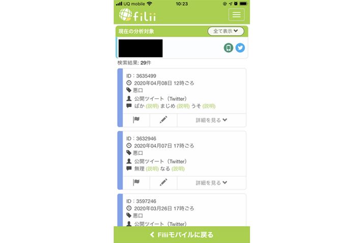 このうち「filii」は、子どものTwitter上でのやり取りやLINEなどで受信したテキストを自動的にチェックして、いじめ、命にかかわる事態、犯罪への関与などを示唆するキーワードが確認された時に、子どものプライバシーを配慮した上で保護者に通知する機能を備えています。