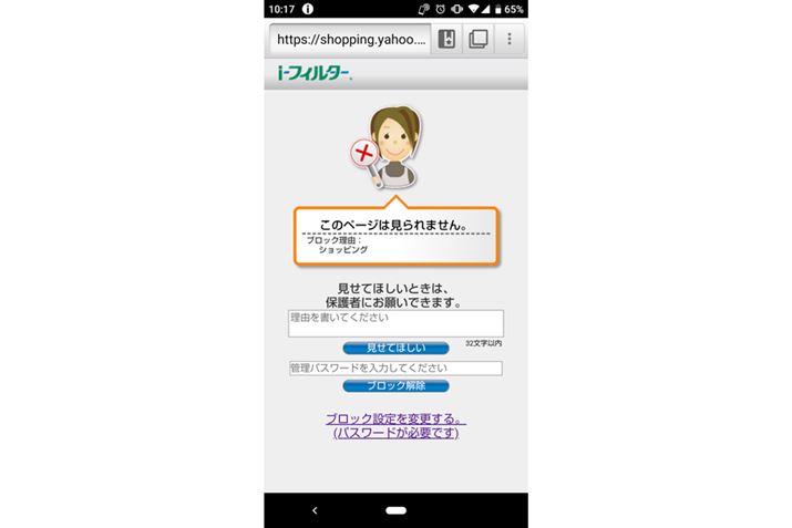 「i-フィルター」の専用アプリでWebサイトを開いたところ。Webサイトのアクセス制限は専用アプリに組み込まれているブラウザーのみで機能します