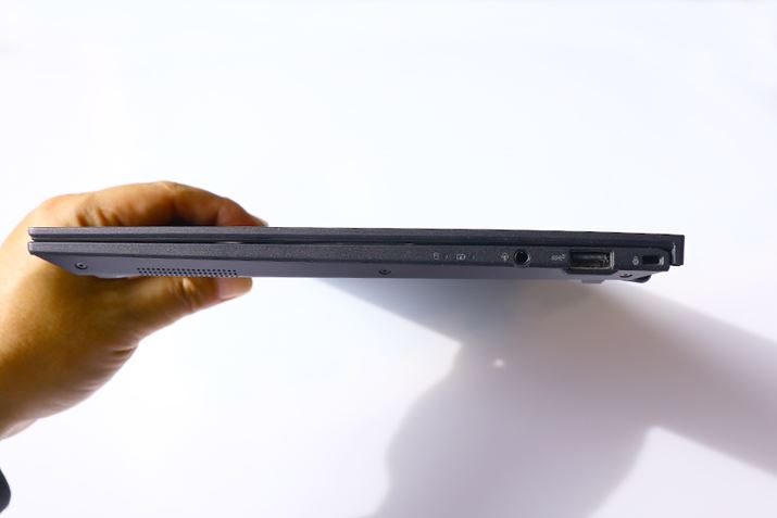 薄型ボディだが、Thunderbolt 3ポート、HDMI出力、Type-AのUSB 3.1ポートなどを備える