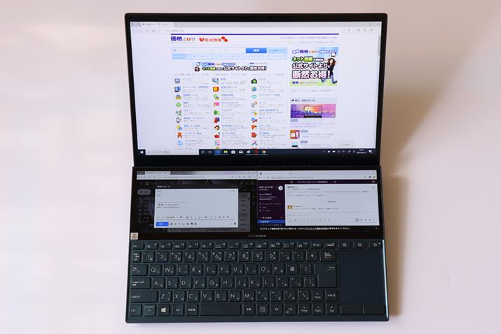 14型というモバイルにもメインにも使えるサイズ感も、在宅勤務が推奨される昨今に適している。ZenBook Pro Duoはクリエイターやゲーマーをターゲットとしていたが、ZenBook Duo UX481FLはもう少しライトなクリエイターやゲーマー向けと言えるだろう。マルチタスクで作業することが多いユーザーにも注目してもらいたい。