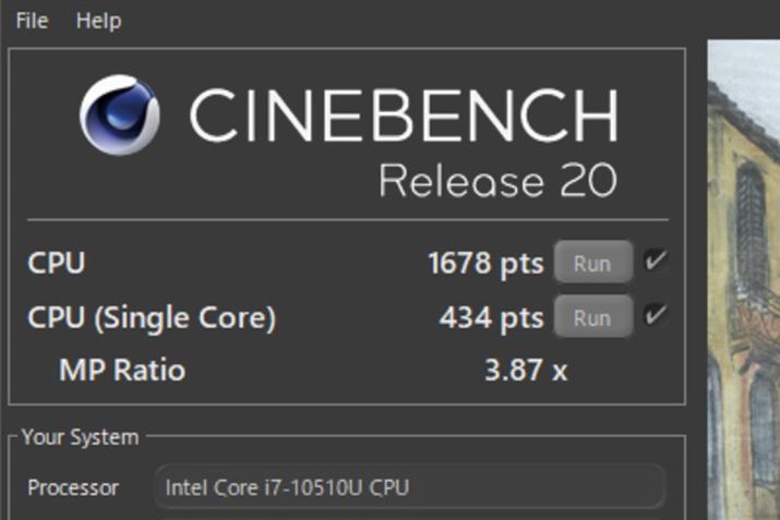 「CINEBENCH 20」のスコアは1678(シングルコアが434)。デュアルファンを搭載しており、冷却性能も高い(膝上で使う場合は高負荷な作業はしないようにしたい)