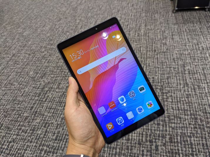 タブレット新モデルの中では、最もサイズが小さく、価格も安いのが「MatePad T8」です。ディスプレイにはWXGA液晶(1280×800)を採用し、ベゼル幅が4.9mmながらも画面占有率80%を実現。片手でも持ちやすいサイズで、ブラウジングや動画、写真鑑賞、読書などのエンタメ利用がメインになりそうです。