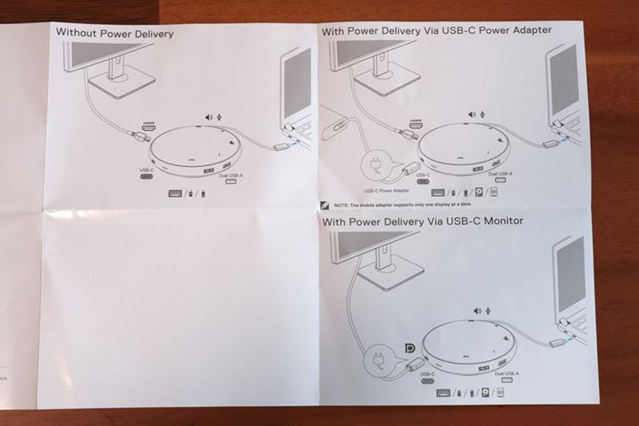 わかりやすい接続例のシートが付属していました。電源パススルーに対応しているので、ドッキングステーション的な使い方ができます