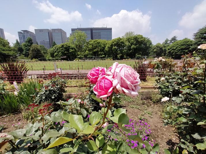 晴天の日中にバラを撮影。800万画素だからか、構図周辺の画質の荒れは少々目立つものの、超広角カメラらしい広々とした構図で撮影できた