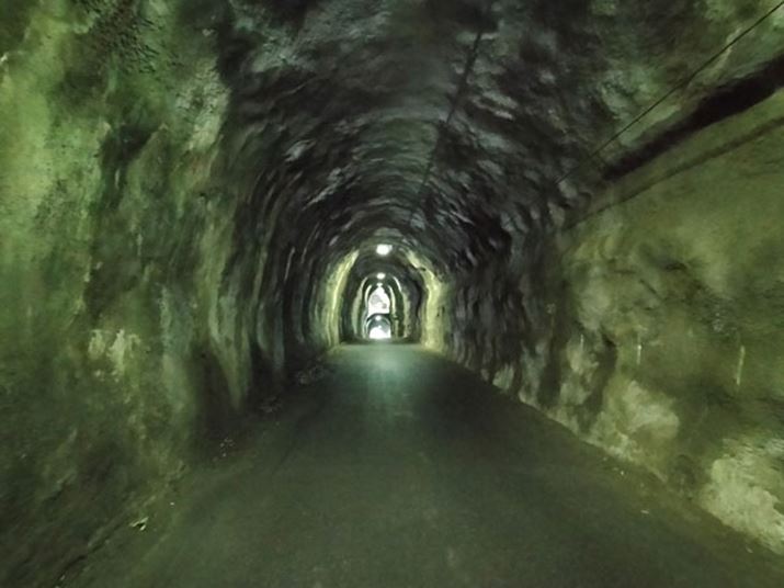薄暗いトンネルの中を標準カメラで撮影。緑がかったトンネルの壁面や、地下水で濡れた岩肌の質感がよく表現されており、高感度撮影にもだいぶ強くなった印象だ