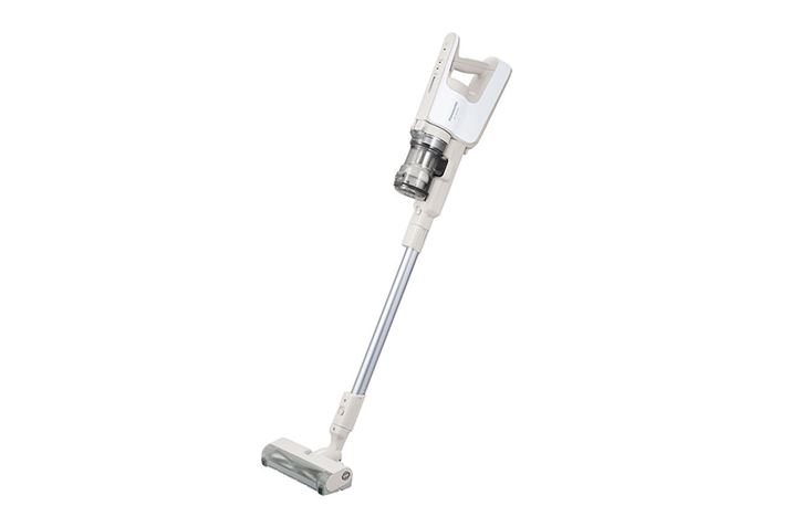 新開発の「からまないブラシ」を搭載したコードレス掃除機。円すい形のダブルブラシ構造を採用し、「髪の毛やペットの毛をノズルの回転ブラシにからみにくくした」とのこと。これにより、手入れの手間を軽減するという。