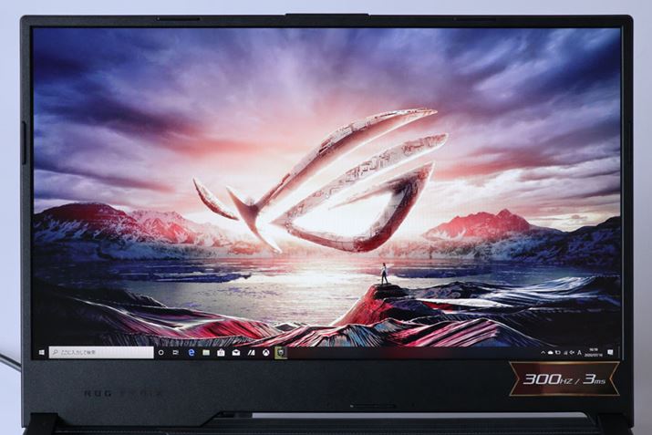 「300Hz/3ms」のシールが大きく貼られたディスプレイ。ライトゲーマーの筆者が試した限りでは滑らかさをはっきりと体感することはできなかったが、本モデルを使った後に60HzのROG Zephyrus Duo 15を使って同じゲームをプレイすると、表現は難しいが、残像というか微妙な遅さを感じた