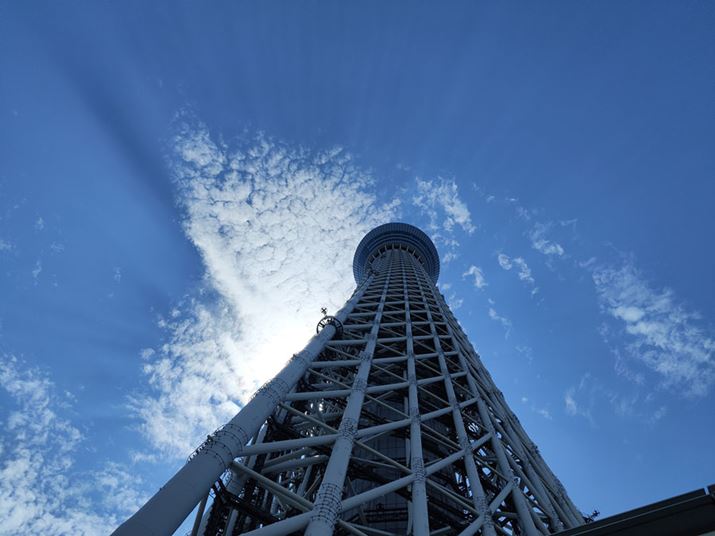 東京スカイツリーをあえて逆光で撮影。ハイライトの雲部分から影になる柱部分、空の青さまで申し分なく写せている。周辺部分のノイズもほとんど見られず、かなりクオリティが高い