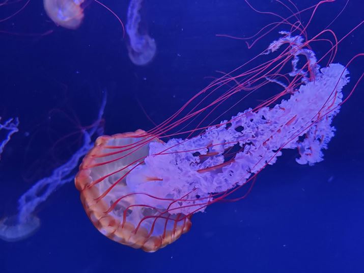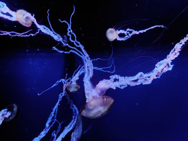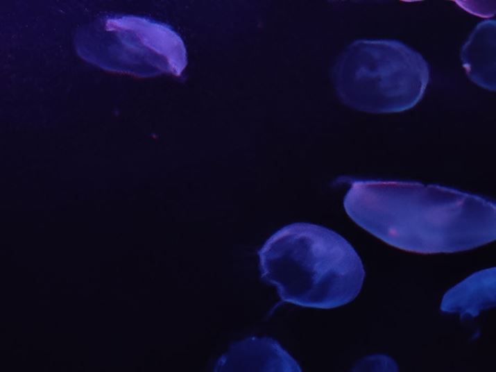 こちらも暗所で撮影したクラゲ。手持ち撮影ながら明るく鮮明でピントも正確なうえに、手ぶれ・被写体ブレも抑えられている。20ショットほど撮ったいずれもがこのレベルだった。カメラ専用機に迫る性能だ