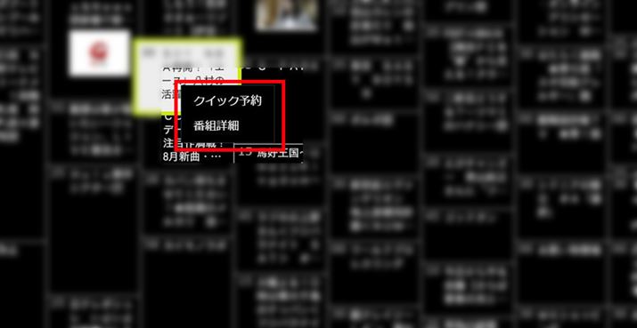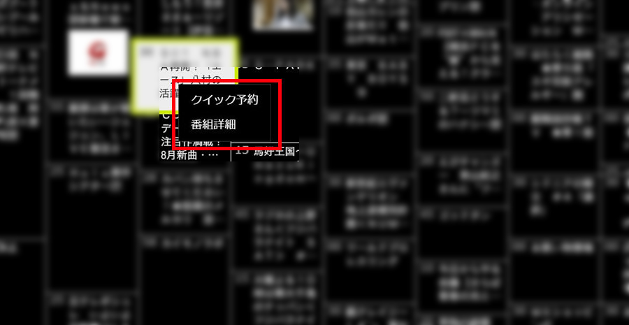 コンテキストメニューから録画予約できる「クイック予約」。地味ながらマウスを使えるパソコンならではの便利な機能です