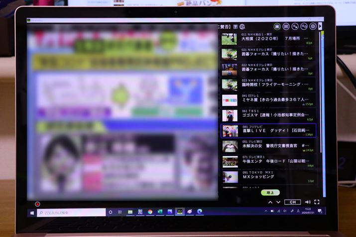 画面構成はWindowsパソコンと少しだけ違います。画面をタップすると、放送中の番組が画面の下のほうに表示され、左右にスライドさせてチャンネルを変更します。