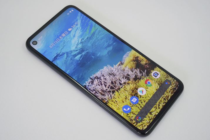 パンチホール型ノッチと極狭ベゼルにより、前面の縁いっぱいまで画面が広がります。見た目の美しさは、「Pixel 4」よりも上だと感じました