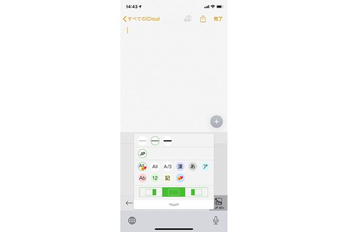 なお、iPhone/iPadには「All」のボタンが2つあるが、右下に絵文字アイコンが付いたほうは、絵文字も入力できる。Android端末は絵文字の入力に非対応なので、「All」はひとつしかない。