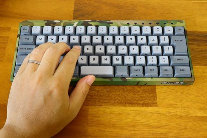 Majestouch-MINILA-R-Convertible は、Bluetooth接続とUSB接続に対応する超コンパクトなメカニカルキーボード。今回試用したモデルはダイヤテック公式オンラインショップ限定のCamouflage(カモフラージュ)