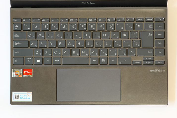 本体は質感の高いアルミニウム合金製。天板にはZenBookの象徴であるスピン加工が施されている。カラーは「パイングレー」という落ち着いた雰囲気のカラーリング。指紋が少し目立つのが気になるが、仕事用としても勉強用としても選びやすいデザインではないだろうか。
