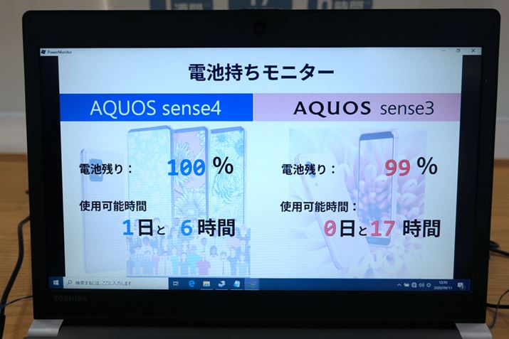 大容量バッテリーを搭載することで、前モデル「AQUOS sense3」と比較して、25%ほどバッテリー持ちが向上しているという