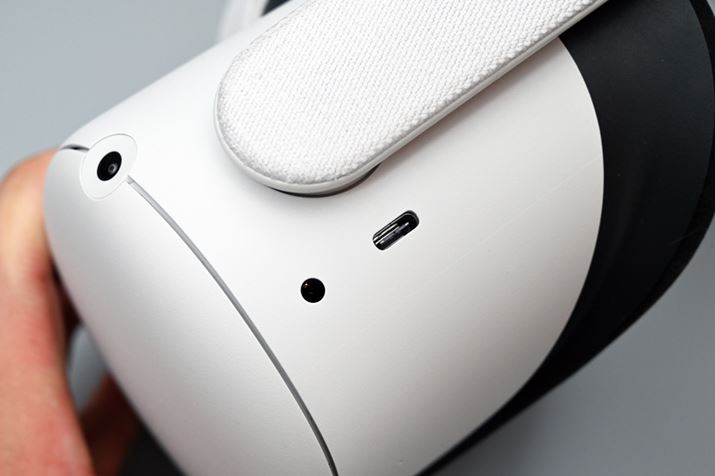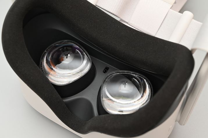 電源ボタンはVRヘッドセット右側面に、ボリューム調整は右底面に、USB Type-Cポートとヘッドホン・イヤホン接続用の3.5mmジャックは左側面に用意されている。「Oculus Quest」では、IPD(瞳孔間距離)の調整用スライダーが用意されていたが、「Oculus Quest 2」ではスライダーが省かれ、代わりにヘッドセットレンズを直接操作して3段階(58/63/68mm)で調整する形に変更されている。ちなみに、「Oculus Quest」でも用意されていた眼鏡スペーサーのギミックは「Oculus Quest 2」でも健在だ。