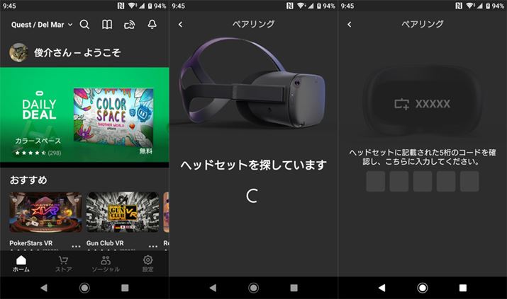 OculusアプリにFacebookアカウントを紐付け、設定画面から「Oculus Quest 2」を選択、コード認証するだけでセットアップは完了だ