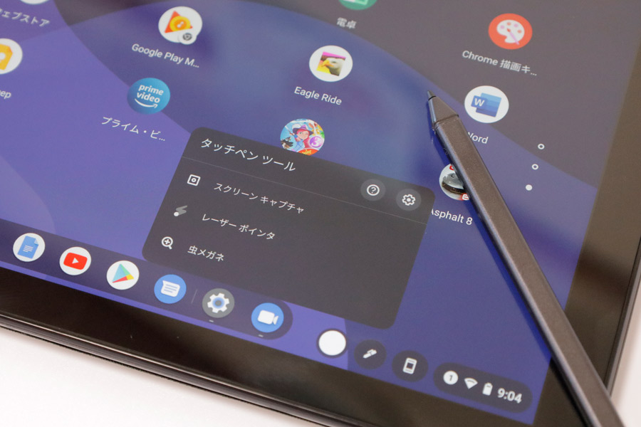 本体に収納できるため、ペン自体は細くて一見すると書きにくそうだが、実際に試すと、意外と書きやすかった。ペン先がプラスチックですべりやすくて、手が画面に触れると誤って書き込まれることもあったが、メモを書く程度なら問題なくこなせるだろう。