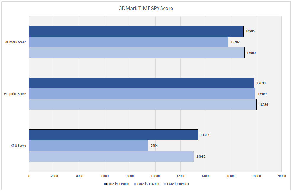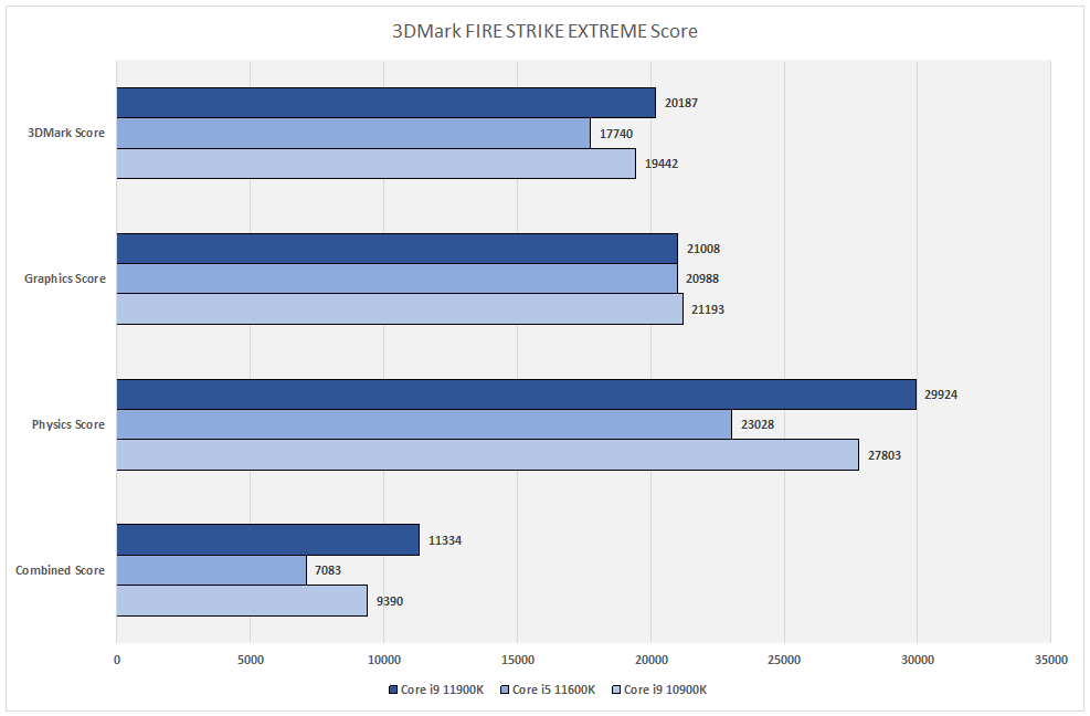TIME SPYは、メニーコアCPUを想定して開発されたこともあり、トータルスコアは10コアのCore i9 10900Kのほうが若干高くなっているが、8コアのCore i9 11900Kとの差はほんのわずか。DirectX 11をターゲットにしたFIRE STRIKEでは、トータルスコアはほぼ差がないと言える範囲に収まっている。さすがに、コア数/クロック数ともに抑えられているCore i5 11600Kは一段低いスコアとなっているが、スペックを考えるとなかなか検討していると言っていいだろう。